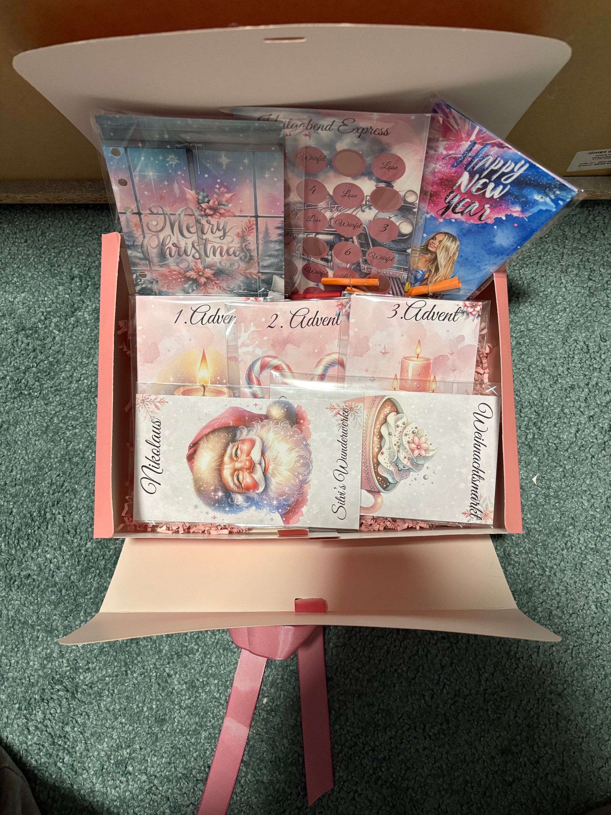 Hier seht ihr eine Box mit einem Daschboard foliert und 7 Challenges auf 250g Papier gedruckt dazu gibt es noch 2 Überraschungen die man nicht sieht