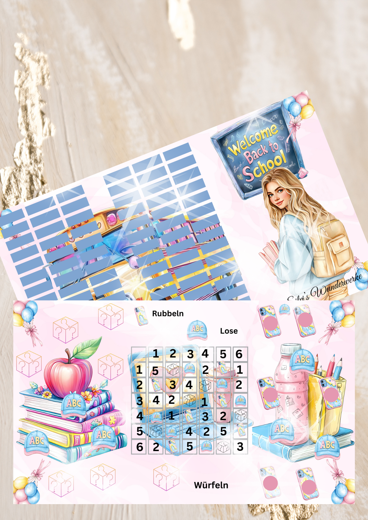 eine 3er Klappkarte auf 250g Papier gedruckt um auf Schulsachen zu sparen mit tollen Aufgaben