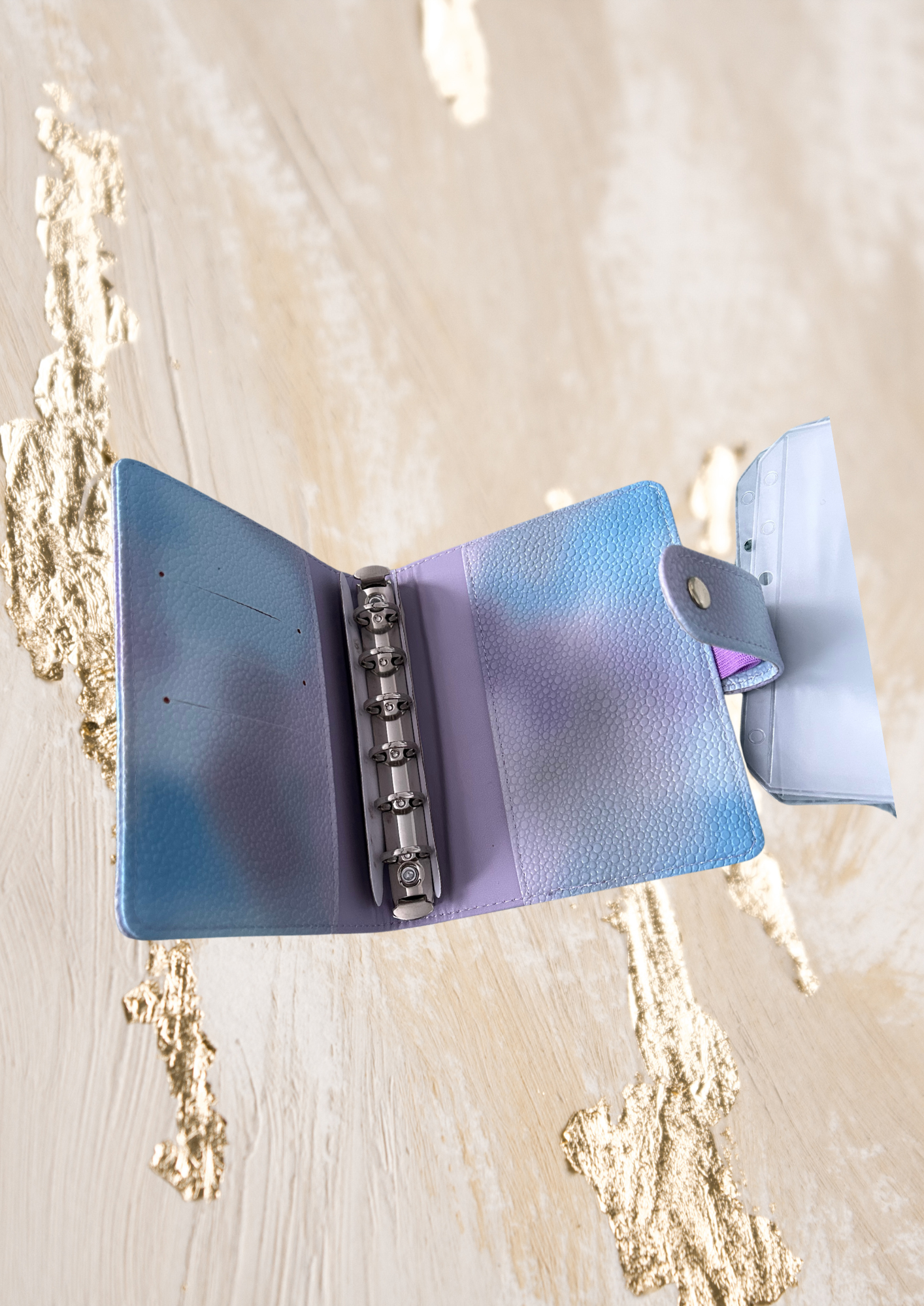ein A 7 binder mit 12 zipphüllen PU- Leder in lila