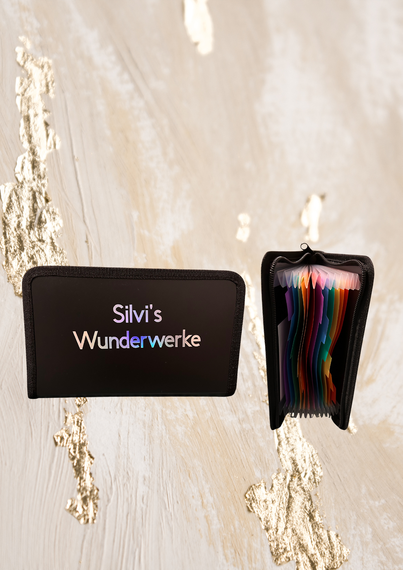 Ein Oranizer in schwarz mit 13 Fächern alle in verschiedenen Farbe und Etiketten.