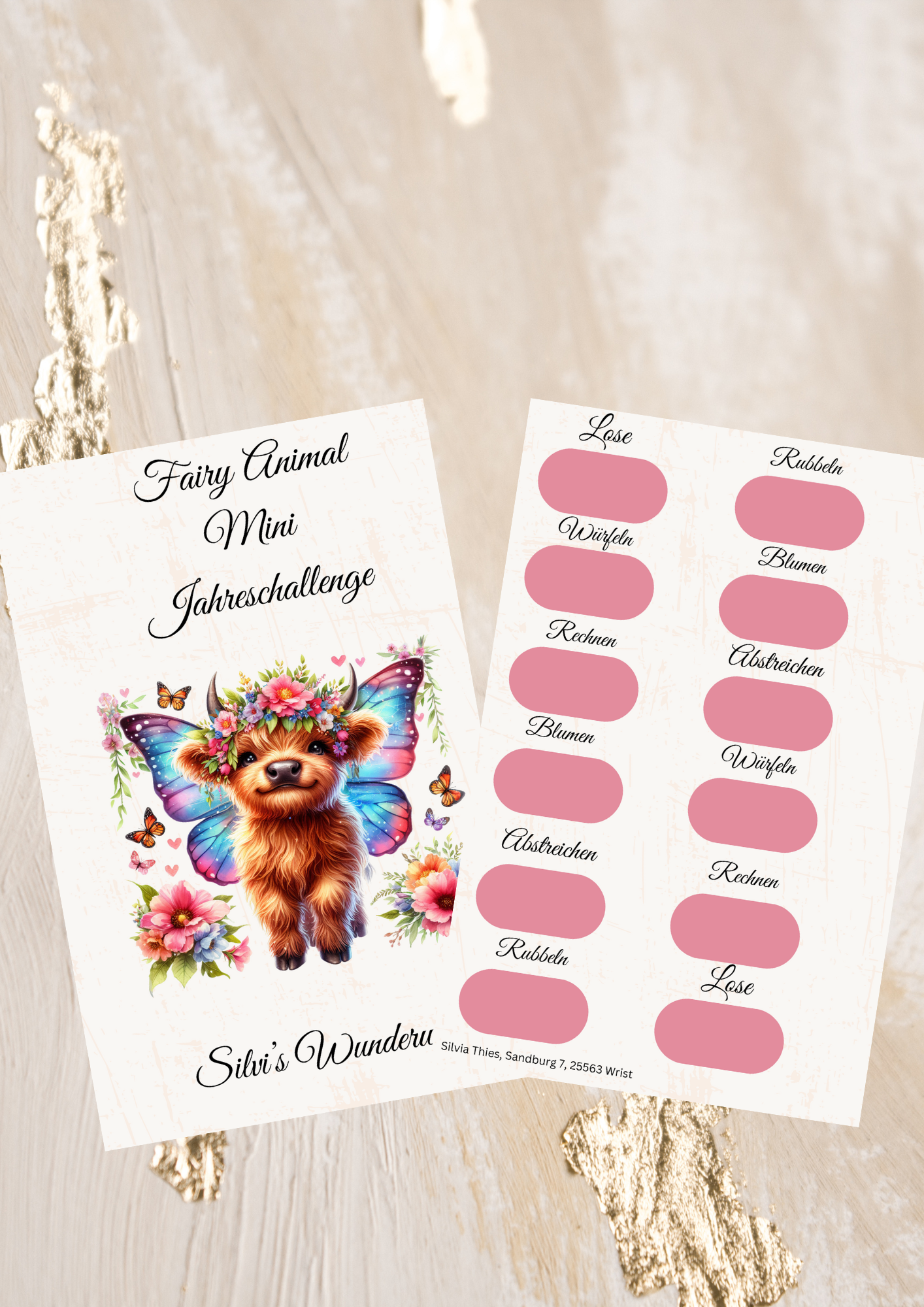 eine Jahreschallenge zum einheften mit rubbeln, abstreichen, losen,rechnen, pro Blume sparen und abstreichen