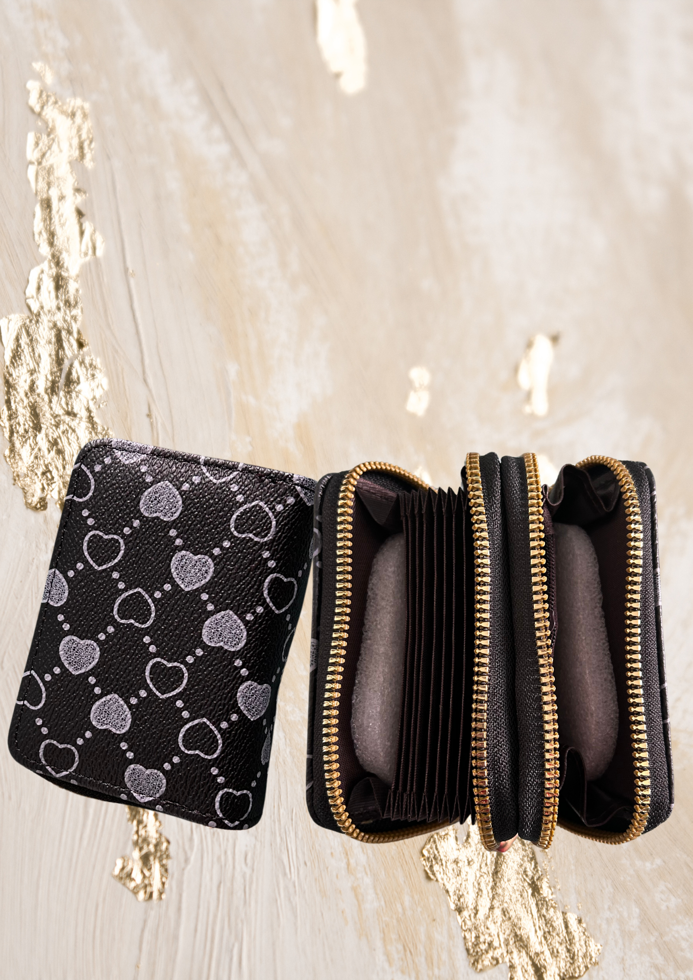 Eine geldbörse mit 2 Reißverschlüssen und viele Fächern für Karten usw
