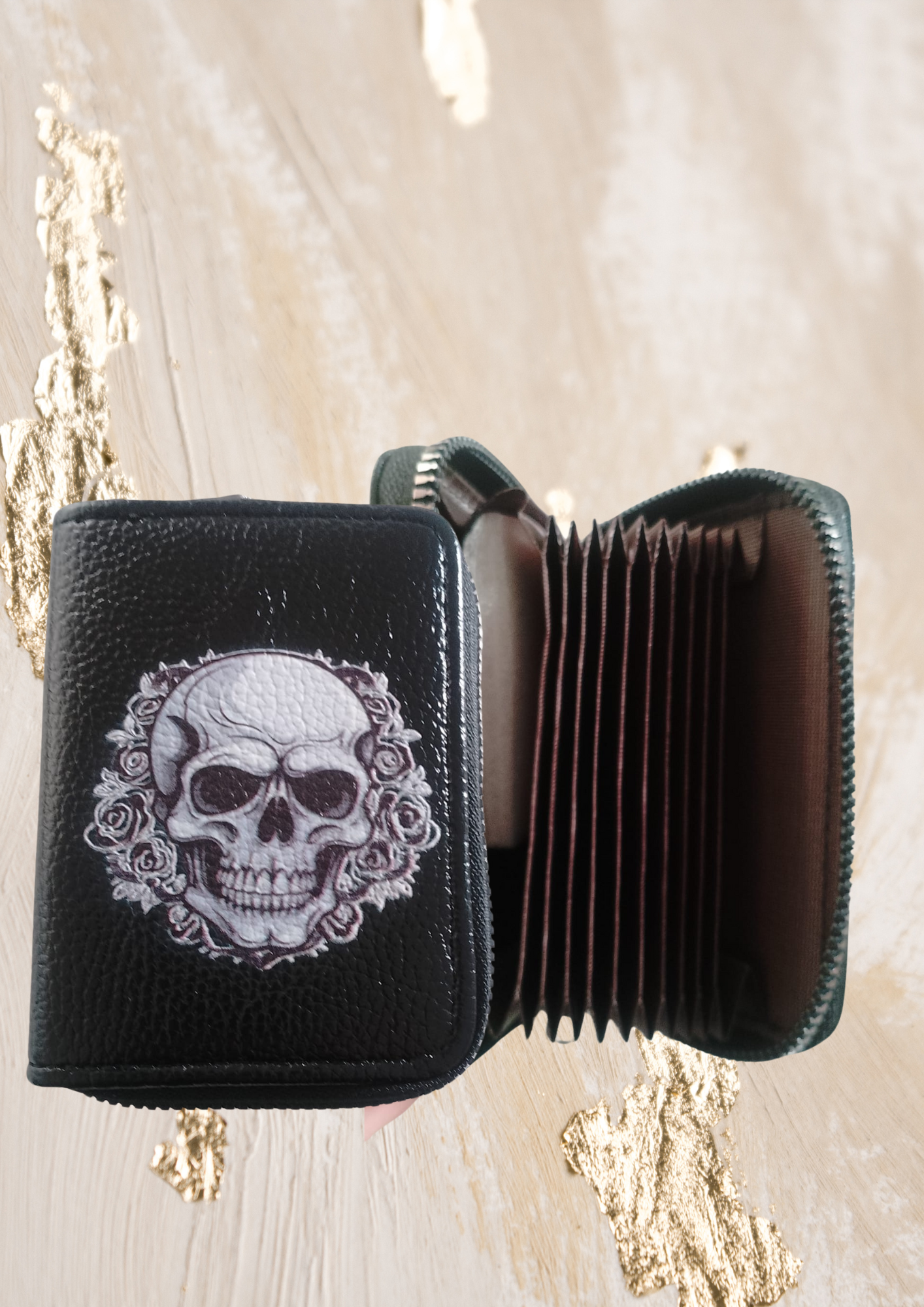 Hier ist eine Geldbörse mit Reißverschluss und Fächern für die wichtigen Kategorien