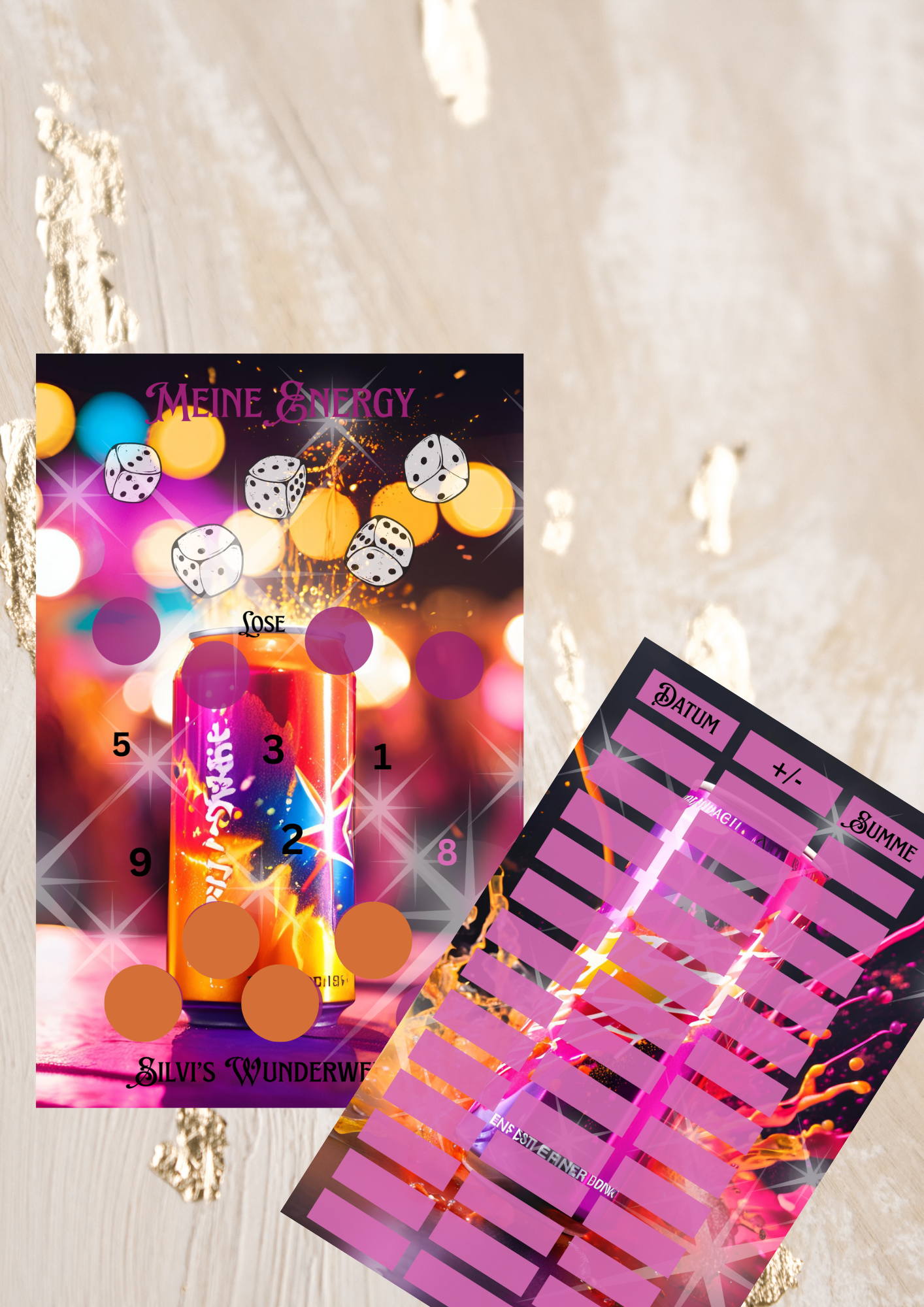 einheftchallenge zum sparen für energy drink zum würfeln, losen,abstreichen und rubbeln