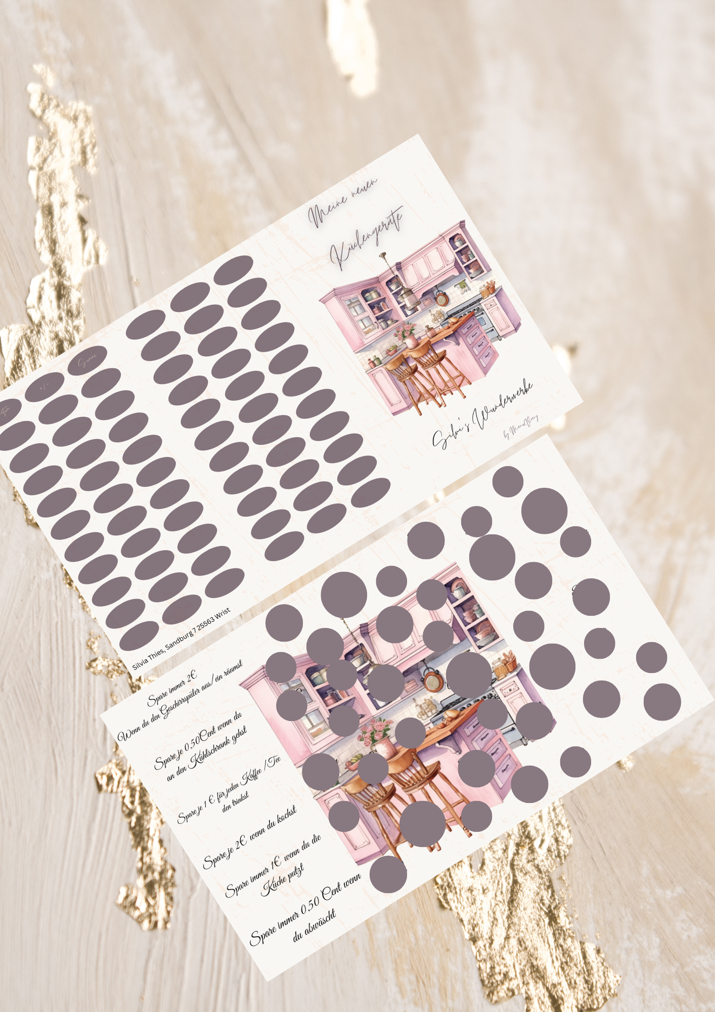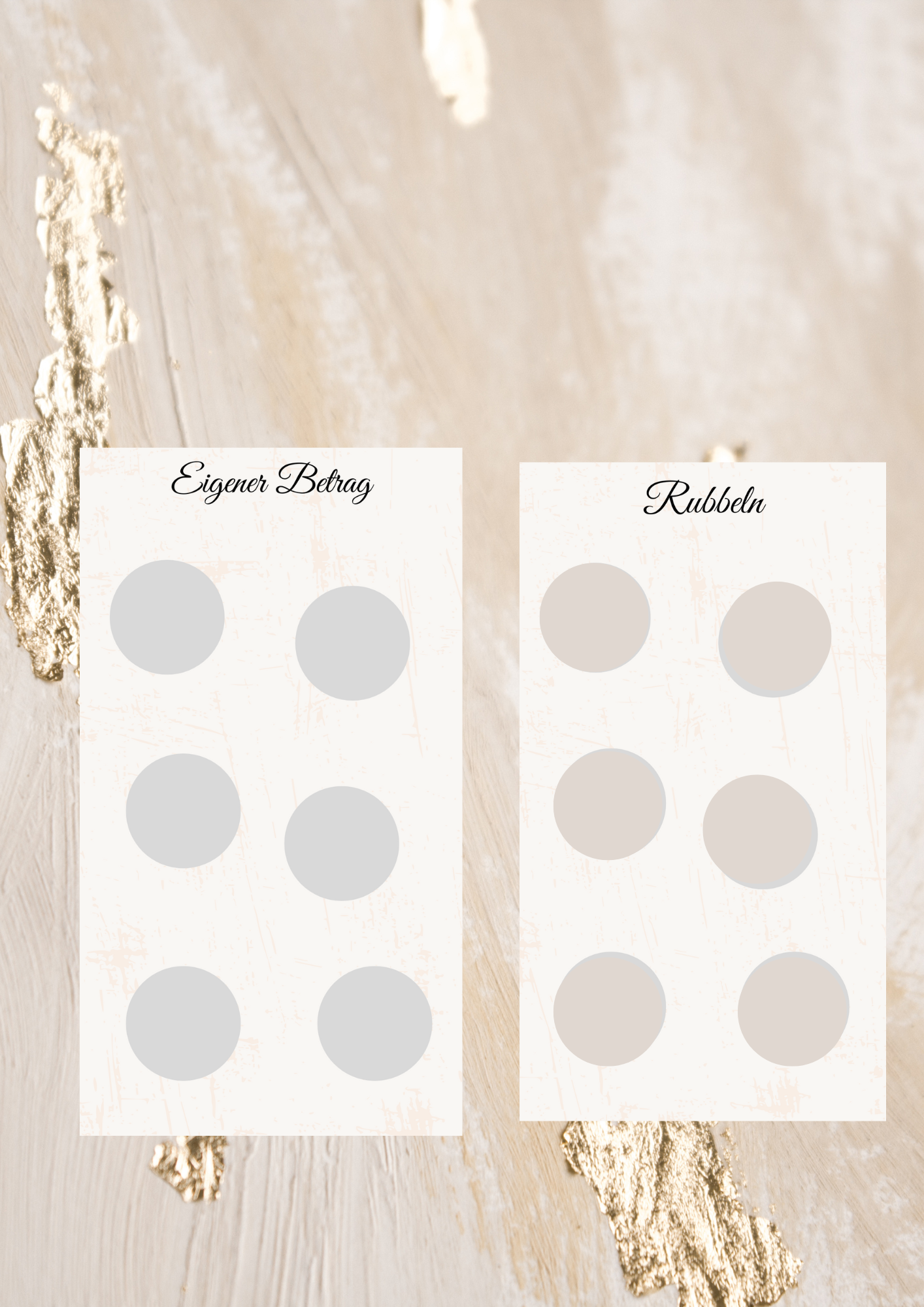 Eine 3er Klappkarte mit fragen und rubbel Actionsfelder. Dazu noch 3 Karten mit losen abstreichen und eigener Betrag