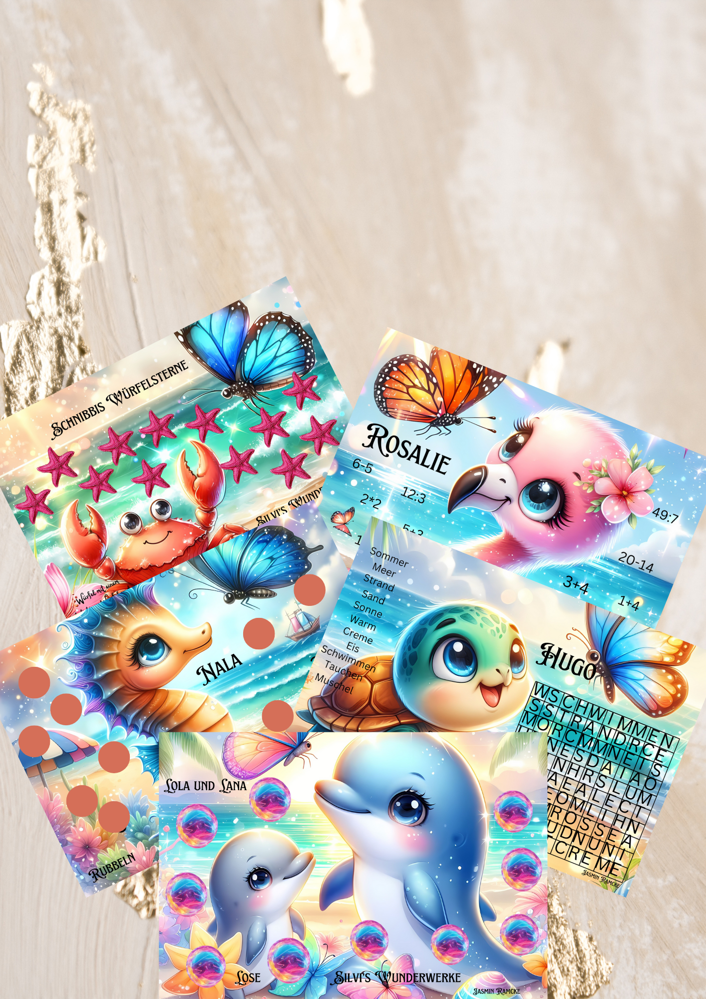 Einheftchallenges zum Lose,Rubbeln, Rechnen,Wörtersuche , würfeln